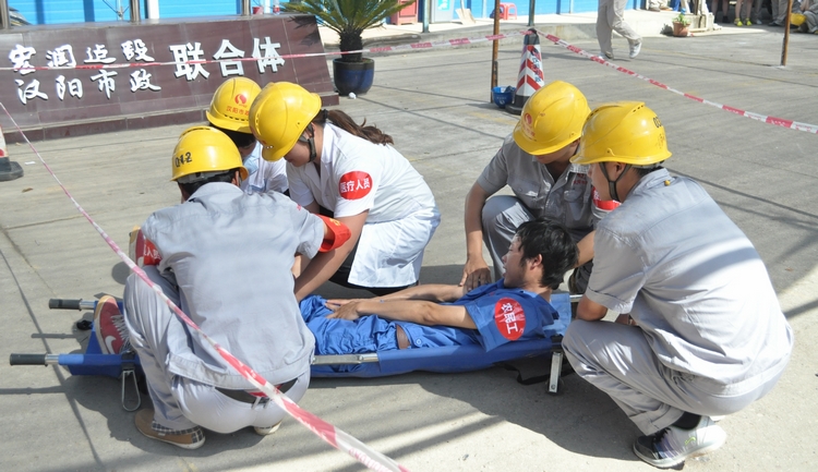 6月16日下午,鐘鑫公司安全演練比賽在玉龍路地鐵項(xiàng)目部舉行。三支來自地鐵項(xiàng)目部的隊(duì)伍參加了此次比賽。鐘鑫公司經(jīng)理王智高、書記王繁及集團(tuán)公司安全文明辦羅艷明部長(zhǎng)觀看了比賽。來自漢口北項(xiàng)目部、三號(hào)線六標(biāo)項(xiàng)目部和玉龍路地鐵項(xiàng)目部的三支參賽隊(duì)伍分別演練了工人高空跌傷、負(fù)高空墜落物體打擊、盾構(gòu)施工中機(jī)械傷害等科目。
