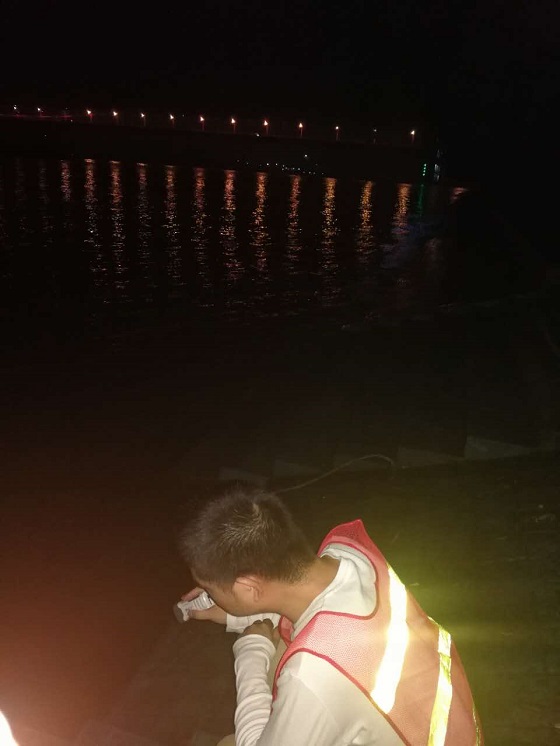 圖為鐘鑫公司職工夜間12點巡查水位
