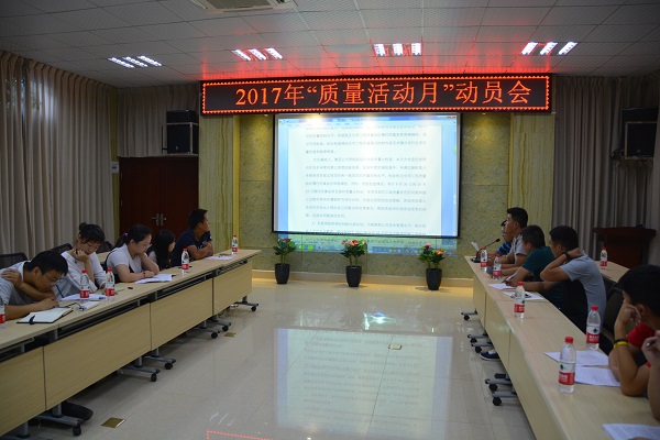 根據(jù)集團(tuán)公司“質(zhì)量活動月”方案的精神和內(nèi)容,為進(jìn)一步加強(qiáng)鐘鑫公司質(zhì)量品質(zhì),切實(shí)組織開展好2017年“質(zhì)量月”活動,努力在全公司營造“重視質(zhì)量、追求質(zhì)量、崇尚質(zhì)量、關(guān)心質(zhì)量”的氛圍,廣泛開展質(zhì)量安全宣傳活動,優(yōu)化質(zhì)量發(fā)展環(huán)境。鐘鑫公司2017年度“質(zhì)量活動月”活動動員會于2017年9月8日下午17時在公司一號會議室順利召開。鐘鑫公司總經(jīng)理涂軼銘,副總經(jīng)理徐浩,各項(xiàng)目經(jīng)理等共30余人參加本次動員會。會議由公司質(zhì)安部部長楊潔主持。
