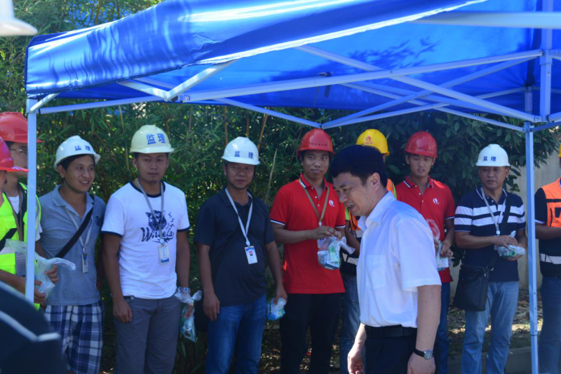 馬澤江一行來(lái)到鸚鵡大道建港路段和在場(chǎng)的一線(xiàn)施工人員親切交流,詢(xún)問(wèn)他們工作的近況,將區(qū)總工會(huì)組織的防暑降溫物資送到大家手中,并向這些為人民造福的城市建設(shè)者表達(dá)了感謝“大家辛苦了!”。馬澤江充分肯定了一線(xiàn)施工人員不畏炎熱、辛勤付出的奉獻(xiàn)精神,叮囑他們?cè)谘谉崽鞖馇闆r下,要做好自身保護(hù),嚴(yán)防中暑,確保自身健康。馬澤江也提出了要做好防暑降溫工作的要求,強(qiáng)調(diào)要保證一線(xiàn)施工人員的健康安全,在確保工程高質(zhì)量發(fā)展的同時(shí)注重人文關(guān)懷。