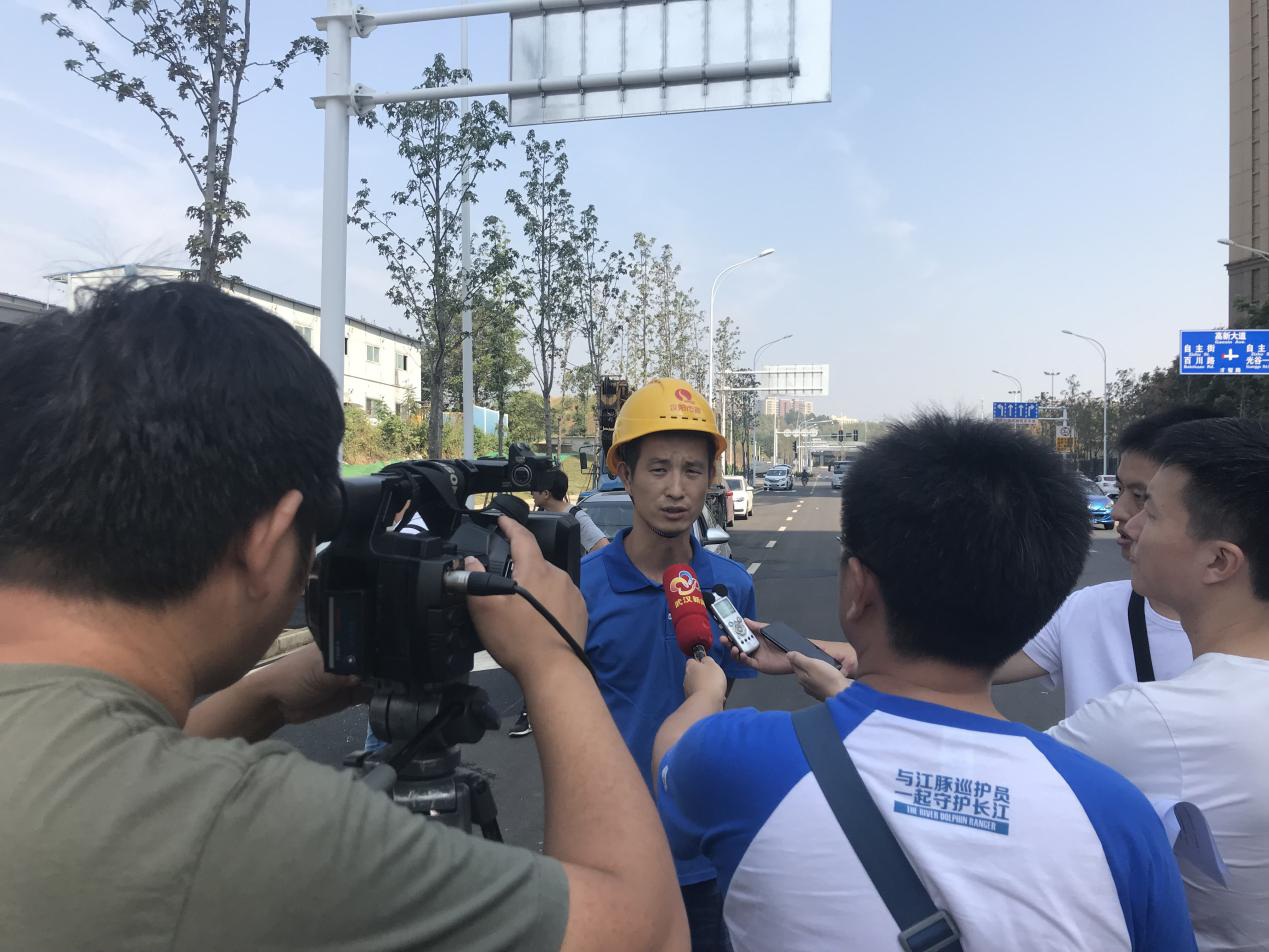 9月30日上午,在漢陽市政光谷火車站周邊五條路項目通車現(xiàn)場,武漢市多家媒體聚焦于此,武漢電視臺、長江日報、楚天都市報等媒體爭相報道項目通車狀況,漢陽市政項目負(fù)責(zé)人熊雨輝接受了媒體采訪。