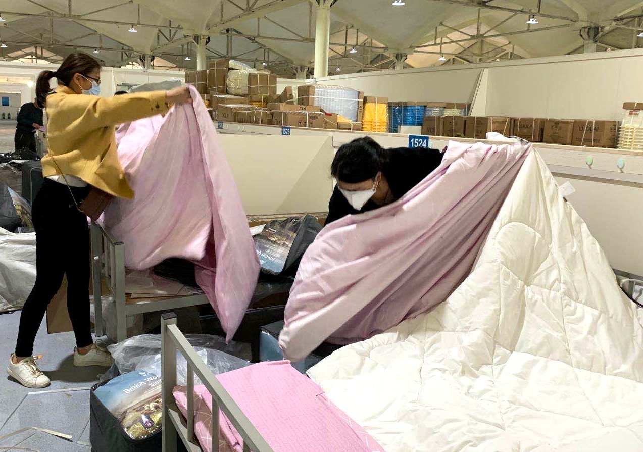 女同志在此特殊時(shí)刻也毫不遜色、主動(dòng)響應(yīng),一往無前,公司全體在漢女職工第一時(shí)間趕往現(xiàn)場,參與到方艙醫(yī)院的內(nèi)務(wù)整理工作中,“需要我做什么就做什么,整理內(nèi)務(wù)都是細(xì)致活,是我們女同志的強(qiáng)項(xiàng),交給我們!”。這是使命更是一份責(zé)任,沒有什么能夠阻擋全公司員工筑起這座“生命之舟”。經(jīng)過火速集結(jié),兩個(gè)小時(shí)內(nèi)公司60多人團(tuán)結(jié)一致一心赴現(xiàn)場,立即投入到了搶建工作中。