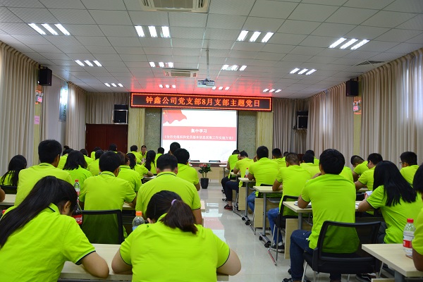 為迎接黨的十九大順利召開,8月18日下午14:30,鐘鑫公司黨支部按照《武漢市八月份“支部主題黨日”重點提示》文件要求,組織支部全體黨員在公司一號會議室召開八月支部主題黨日活動,切實增強全體黨員四種意識,以良好的精神風貌迎接十九大召開。