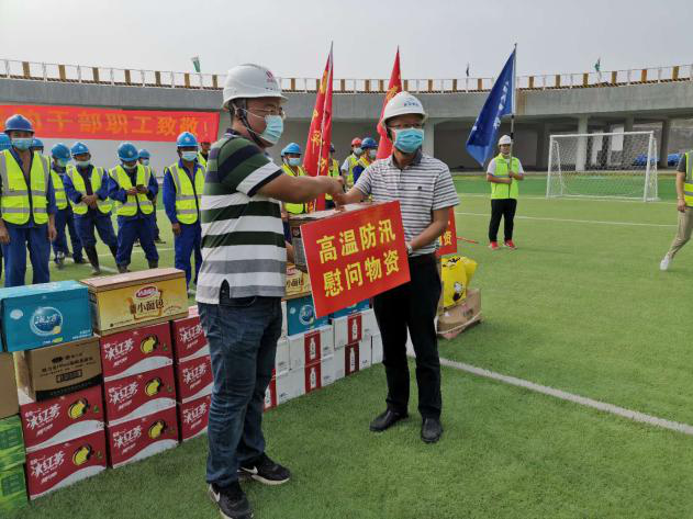 7月20日下午,武漢市城市建設投資開發(fā)集團有限公司副總經(jīng)理盛華、漢陽市政建設集團有限公司常務副總經(jīng)理王智高一行赴月亮灣城市陽臺項目施工現(xiàn)場進行高溫慰問,鐘鑫公司總經(jīng)理盧永紅陪同。盛華一行看望并慰問了由鐵投公司牽頭組建的防汛搶險突擊隊25名隊員,并為他們送去了純凈水、面包、牛奶、王老吉、雨衣及雨傘等數(shù)類高溫防汛慰問物資。盛華對炎炎烈日下堅守在防汛抗洪一線的25名防汛突擊隊隊員表達了肯定及感謝,并叮囑防汛人員要繼續(xù)發(fā)揚吃苦耐勞、積極奉獻的精神,嚴格落實防汛排漬工作,打好防汛抗洪攻堅戰(zhàn)。