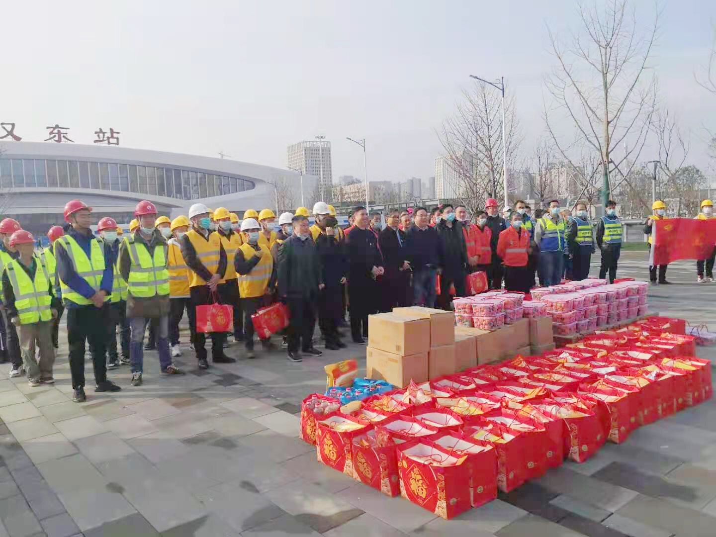 明銘肯定了各參建單位對(duì)武漢東站及配套道路工程建設(shè)項(xiàng)目的全力支持,并對(duì)春節(jié)期間留漢人員一如既往的辛勤堅(jiān)守表達(dá)感謝。同時(shí),他也對(duì)各參建單位提出相關(guān)要求,一定要切實(shí)做好春節(jié)期間留漢員工的疫情防控和生活物資保障工作,讓每個(gè)留漢人員都能感受到“家”的溫暖。最后,明銘一行向所有的留漢人員派發(fā)了春節(jié)慰問禮包,并表達(dá)了節(jié)日的祝福,現(xiàn)場(chǎng)氣氛活躍,其樂融融。留漢人員表示,感謝領(lǐng)導(dǎo)的關(guān)懷,即使在異鄉(xiāng),也感受到了家鄉(xiāng)的親切,只要國(guó)家、政府有需要,建筑人堅(jiān)決執(zhí)行,義不容辭。