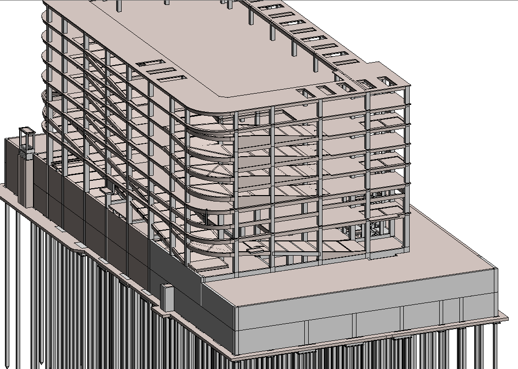 BIM技術(shù)提效率。面對停車樓從地下室至屋面的復(fù)雜的坡道結(jié)構(gòu),項目部積極采用BIM模型技術(shù)指導(dǎo)現(xiàn)場施工,用三維模型給工人技術(shù)交底,讓工人熟悉坡道的每一弧形梁與直梁的位置關(guān)系,更為精確地領(lǐng)會設(shè)計意圖,完全將圖紙吃透。